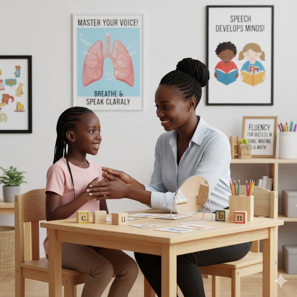 We coach children and adults to be fluent, audible, and get the most out of their voice, including how to control breathing to enhance speech.